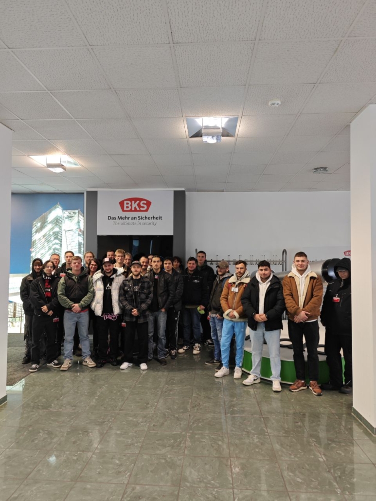 Am Vormittag wurden wir bei der Firma BKS empfangen, einem der führenden Unternehmen im Bereich Schließ- und Sicherheitssysteme. Dort erhielten wir einen faszinierenden Einblick in die Welt der modernen Schließtechnik. Die Mitarbeiterinnen und Mitarbeiter von BKS stellten uns aktuelle Entwicklungen und Innovationen vor, die die Zukunft der Sicherheits- und Gebäudetechnik prägen werden – von hochpräzisen Schließzylindern bis hin zu digitalen Zutrittssystemen. Für viele von uns war es beeindruckend zu sehen, wie viel Hightech und ingenieurtechnisches Know-how hinter Produkten steckt, die im Alltag oft ganz selbstverständlich erscheinen.