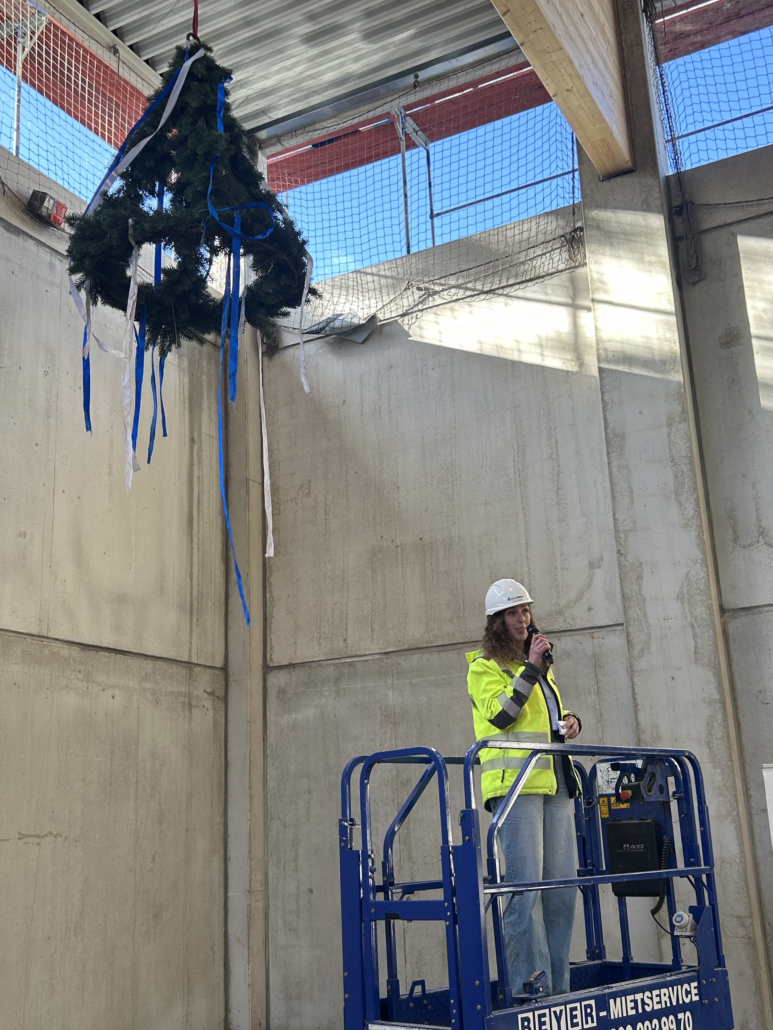 Am vergangenen Donnerstag konnten wir gemeinsam mit Herrn Oberbürgermeister Dr. Keller, Herrn Stadtdirektor Hintzsche und vielen weiteren Gästen das Richtfest der neuen Vierfachsporthalle feiern, die auch wir ab Sommer 2026 für den Schulsport nutzen können. Neben den Hallen und einem großen Kraftraum wird es dann auch wieder eine Kantine geben, die uns mit Speisen und Getränken versorgen kann.